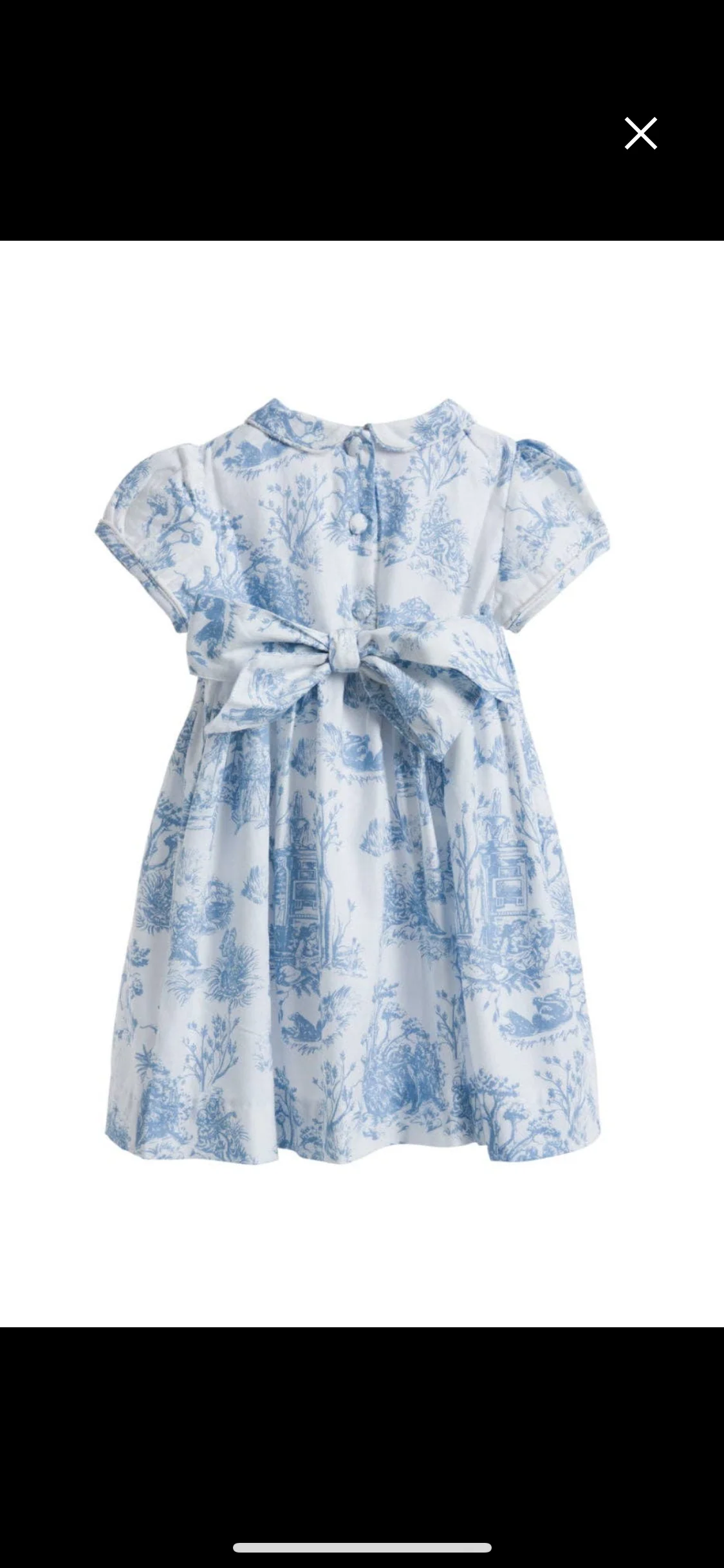 As seen in Vogue Magazine. The sky blue Theodora dress puts a stylish twist on the classic Toile de Jouy. There is no denying that this is the dress for the star of the show! Delicate puffed cap sleeves create a romantic silhouette, while intricate hand smocking and embroidery makes this signature dress one of the most luxurious – if not the most iconic – in the Annafie catalogue! Our dresses are lined in cotton to create a perfect flare for twirling and dancing like everybody’s watching. The Theodora has fabric covered buttons that fasten at the back and an attached sash tie at the waist (12 months+), which is a good test for the best bow-tier in the family. - 100% fine cotton - Machine washable at 30°C - Traditional hand smocking and embroidery - Smocking width increases with dress size